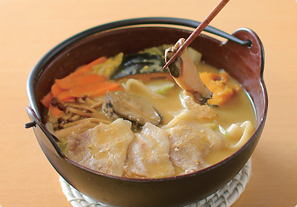 會搭配大量的蔬菜和當地產的''栗南瓜''來增添風味