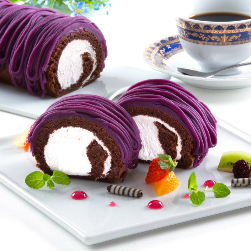 因其皮薄、肉紫、甜度高且含水量低,特別適合製成甜點。