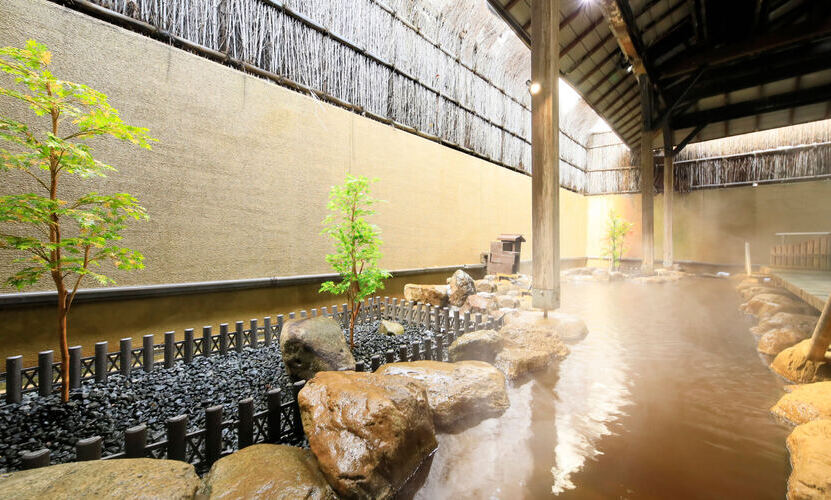 使用了北海道的御影石(高品質花崗岩的一種,以花樣美觀和堅硬耐用而聞名),溫泉的熱氣充滿浴場,彷彿三溫暖內雲霧繚繞,心曠神怡。