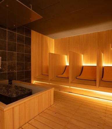 定時設置的三溫暖,座位間設有隔板,可以不必在意他人目光,盡情享受放鬆時光,冰水浴處提供冰塊自取,旅客可以自由調整最舒適的水溫。