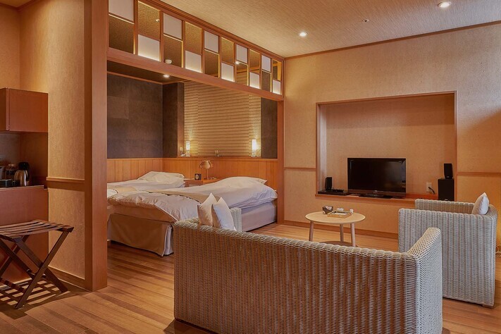 本館有著檜木浴池以及馬賽克磚浴池,以香氣馥郁的檜木打造而成的浴池,營造出靜謐高雅的氛圍。館內設有室內湯與露天湯,各具特色,皆能讓人感受到與十勝自然融為一體的開放感。