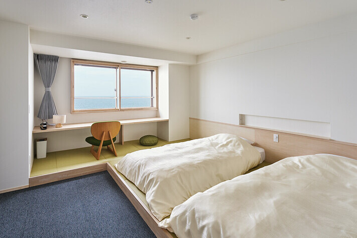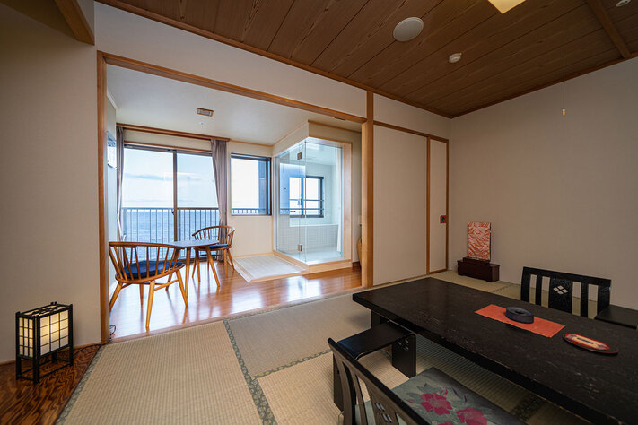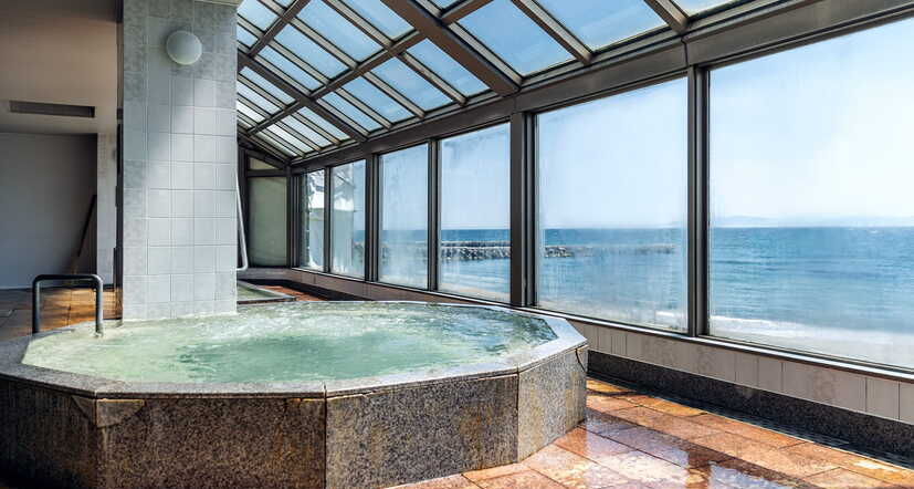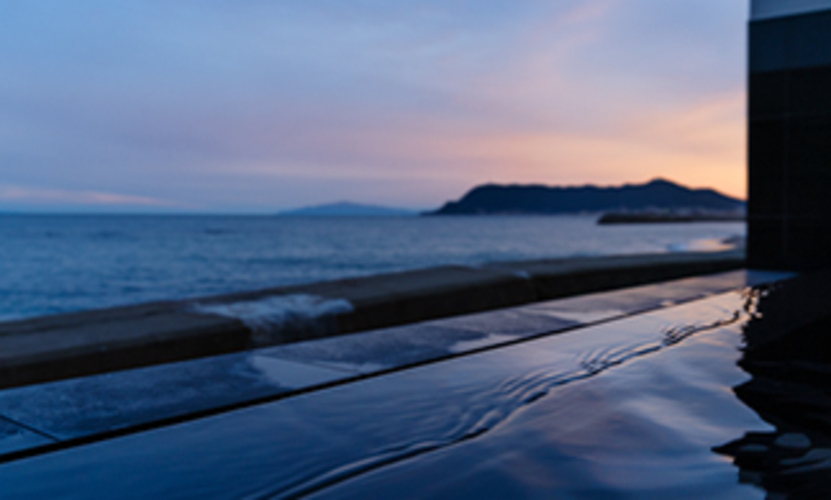 在全新整修的 「大洋」 與 「銀河」 露天風呂中,湯池景致延伸至海岸線,浸泡其中仿佛海天相連,讓人有如融入大海般的奇妙感受,夜幕降臨時,點點漁火映照海面,營造出夢幻般的氛圍。