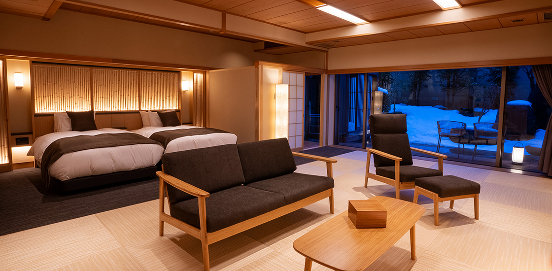 古窯的露天浴池設計融入自然景觀,春賞櫻、夏聽蟬鳴、秋觀紅葉、冬浴雪景,四季風情美不勝收。無論白日或夜晚,都能在蒸騰湯煙中,靜靜感受山形大地的氣息。