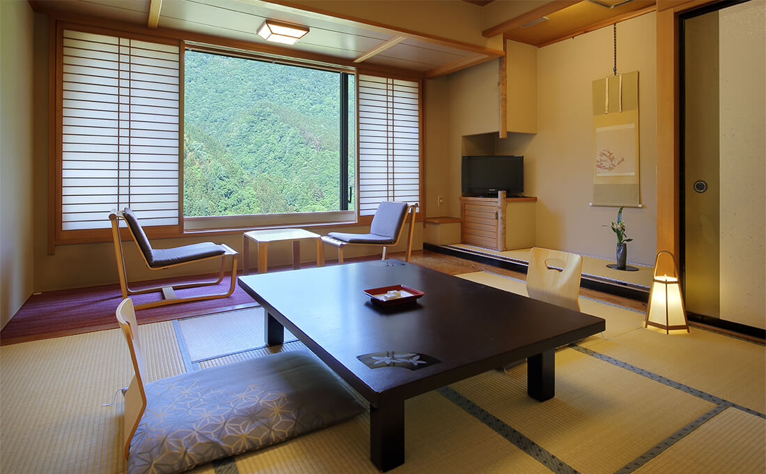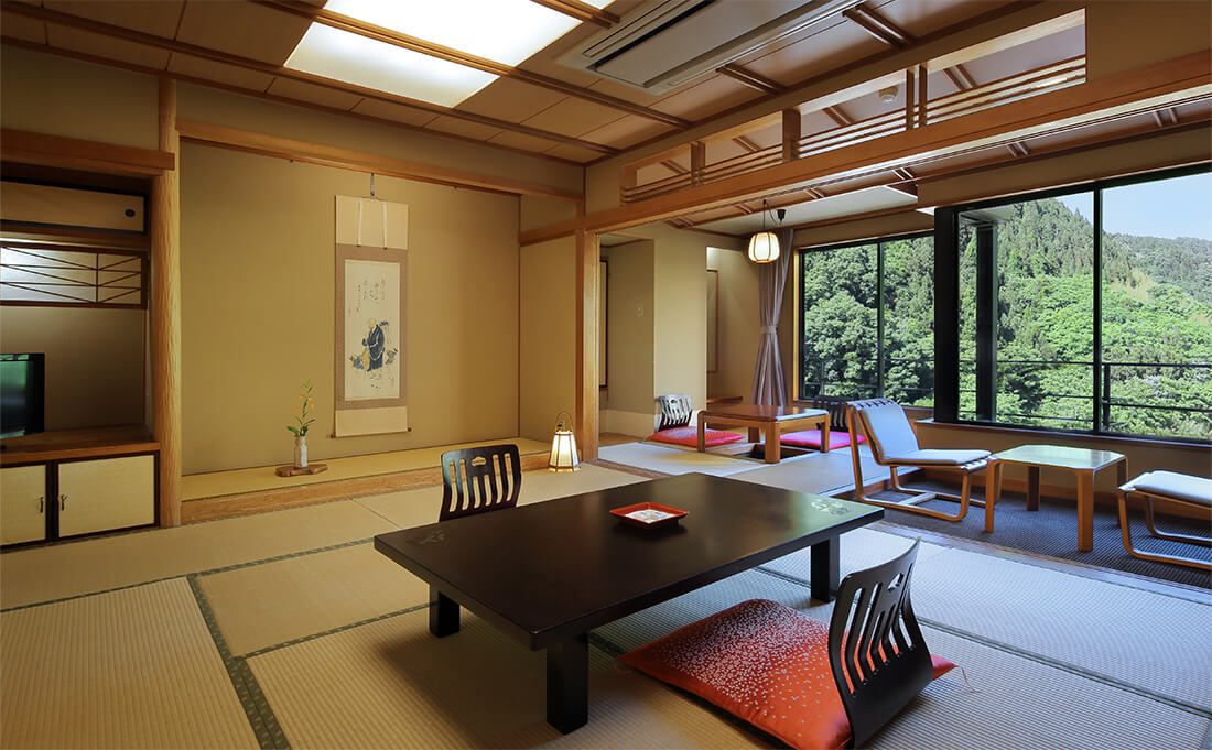 兩間觀景貸切露天風呂:「月之湯」與「星之湯」。這裡您可以與家人或朋友平靜共享私人泡湯時光。