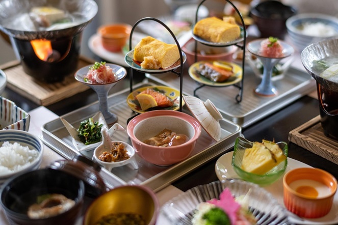早餐採日式定食方式提供,使用山形的當季食材,每一道菜都充滿地方風味與新鮮感。
