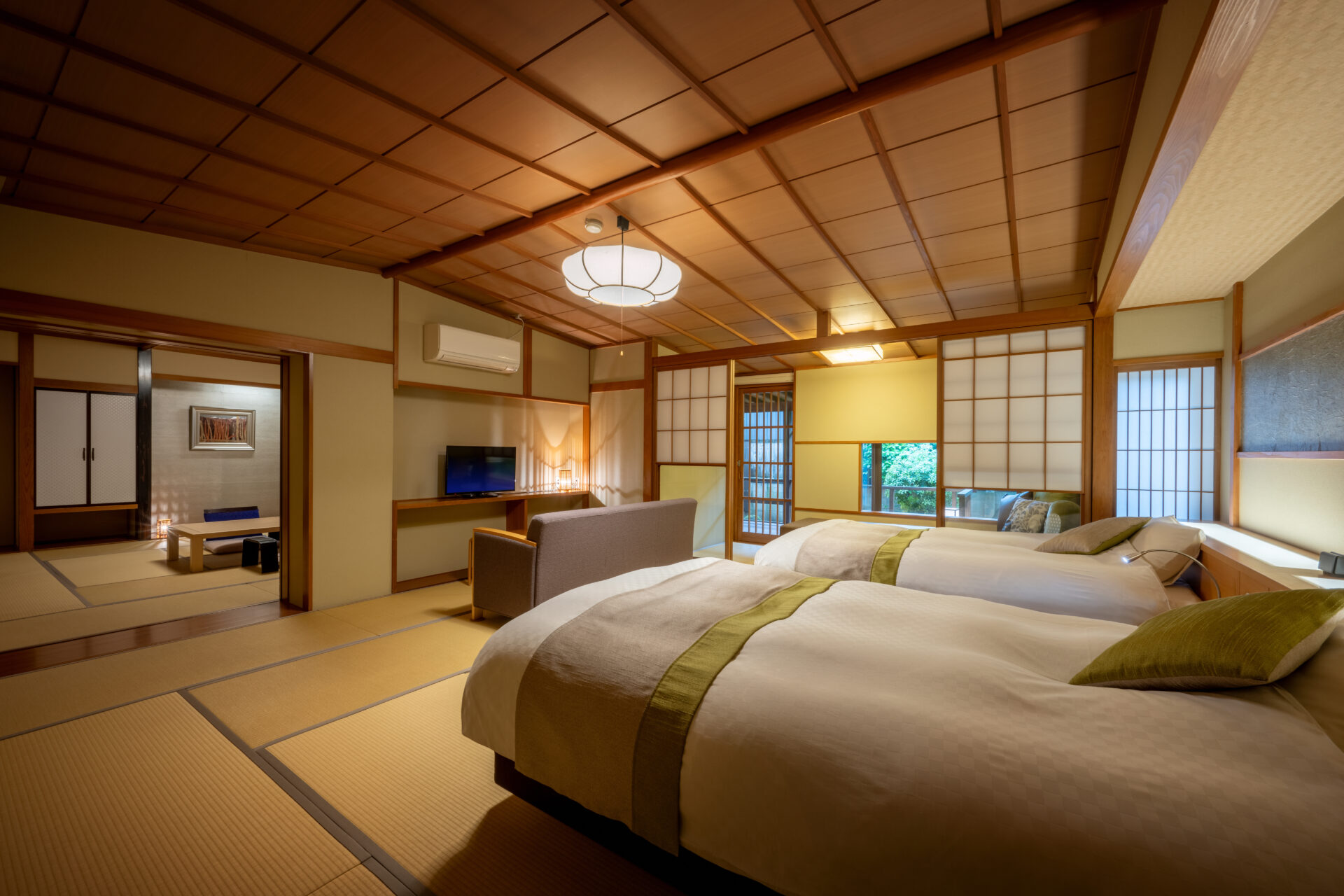 若選的房型具備私人用餐空間,用餐可在房間內進行,享受獨立與寧靜的氛圍;一般房型則是在旅館的餐廳或是專有的個室會食場進行。