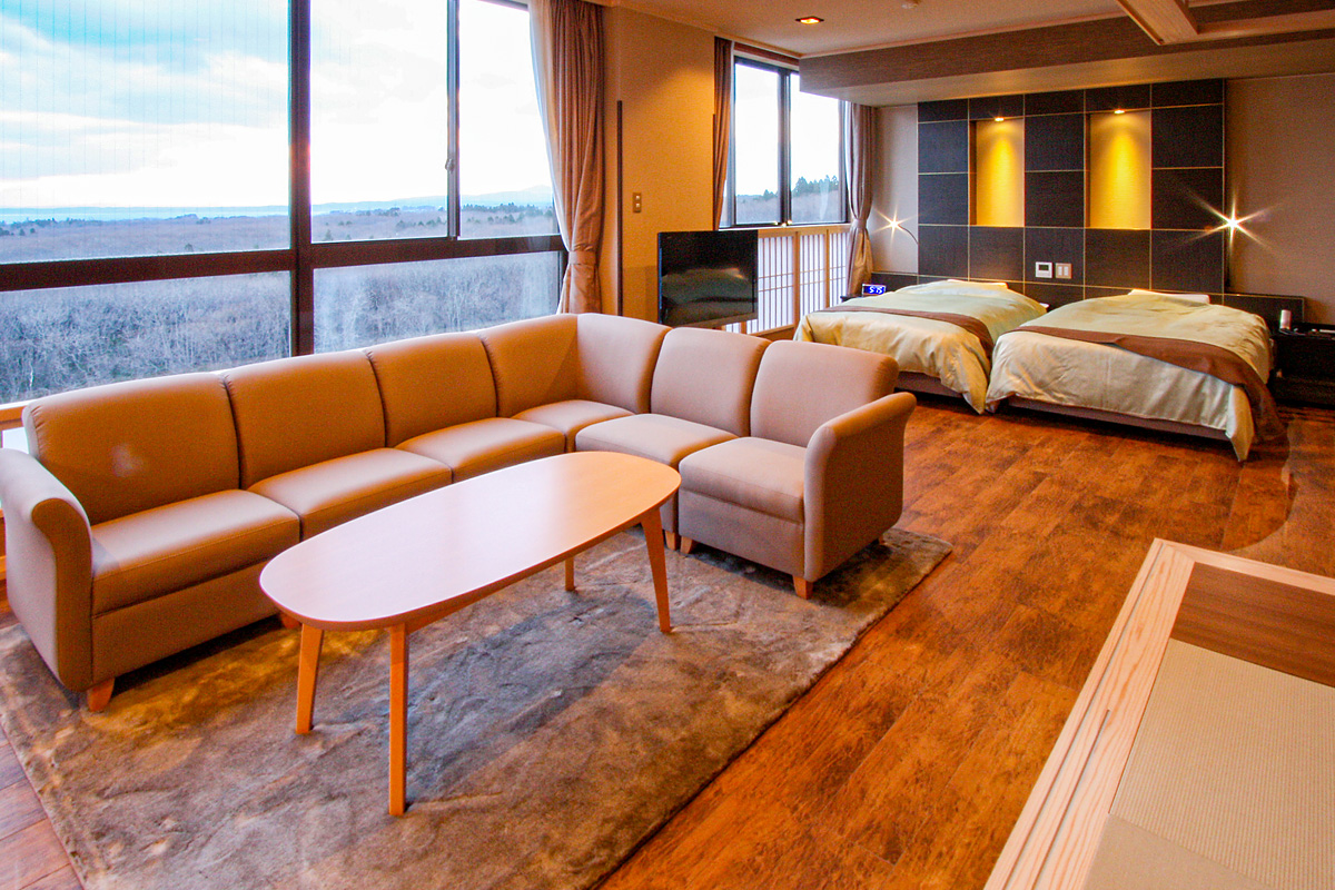 面向樹海,四季景致各有風情,露天浴池可讓您邊浴湯邊欣賞自然景色。