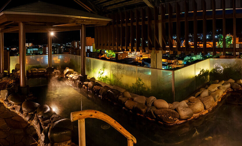 位於13屋頂,在絕佳的位置,坐擁遼闊的視野視野的露天風呂中,設有4種各具特色的湯池。沐浴於縷縷湯煙之間,伴隨眼前的美景,盡享多樣泡湯樂趣。