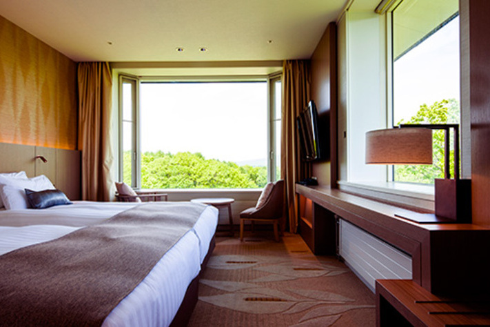 您可在享用各種和、洋式美食時,透過挑高落地窗盡情欣賞大沼豐美的自然風光,享受優美的早晨。