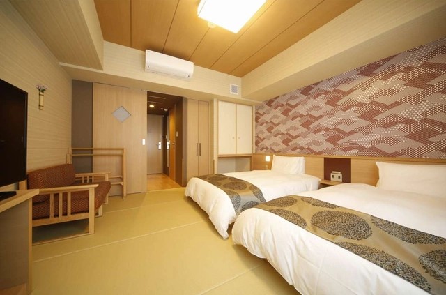 全館採榻榻米鋪地,連走廊與電梯都散發著草席香氣