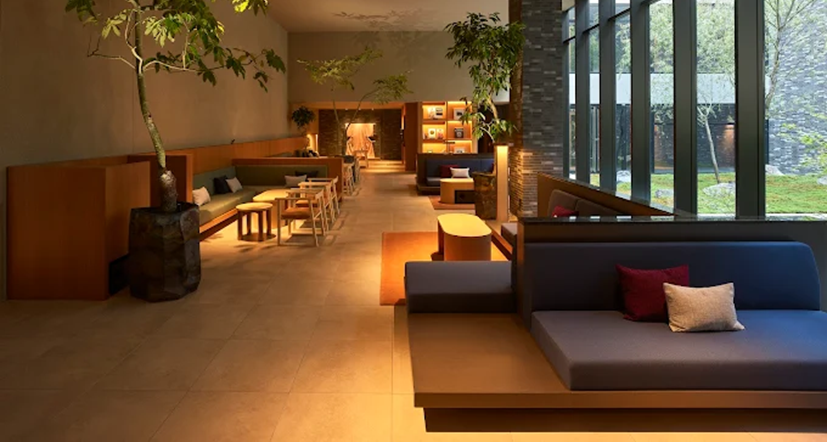 以「雅致町家×現代精品」為主題,入口以格子木門與石板小徑營造京都巷弄的迎賓感