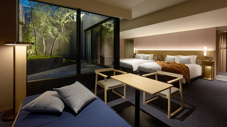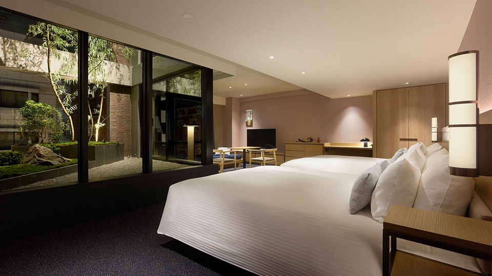 客房融合和風色調與義式家具,呈現成熟內斂的優雅質感