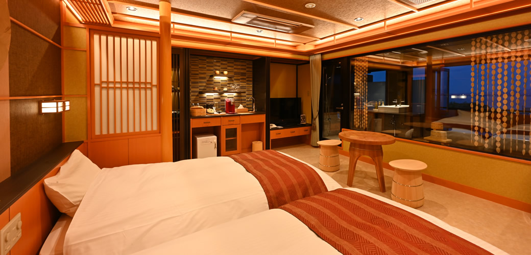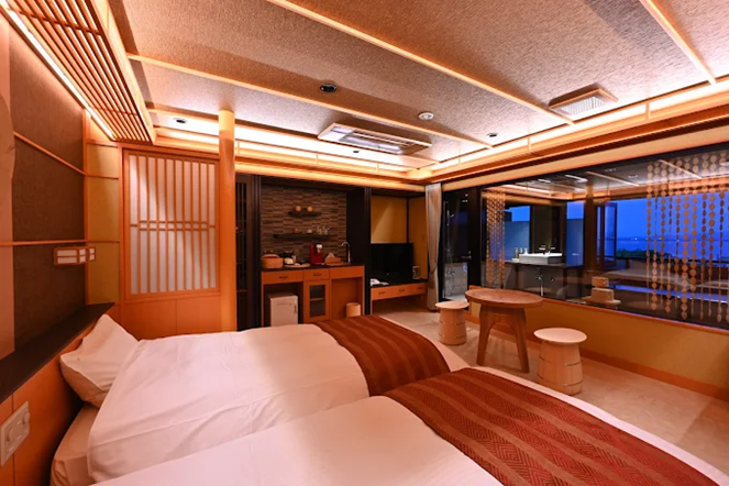館內以花卉圖樣與香氣點綴每個角落,展現溫柔氣息,客房多為和洋融合設計