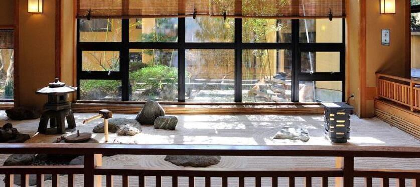 日式的枯山水庭園中,完全不使用一滴水,僅用岩石、砂材以及植物表現自然的山川河海,以禪宗思想為基本,抽象地展現出冥想的空間感覺,能讓人不自覺地放鬆身心並沉浸其中。