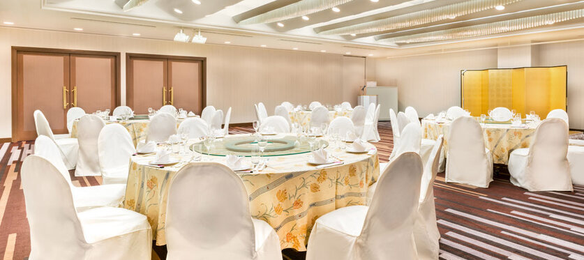 擁有6m挑高大空間,近600平方公尺的大型宴會廳,最大能收容超過200名賓客。