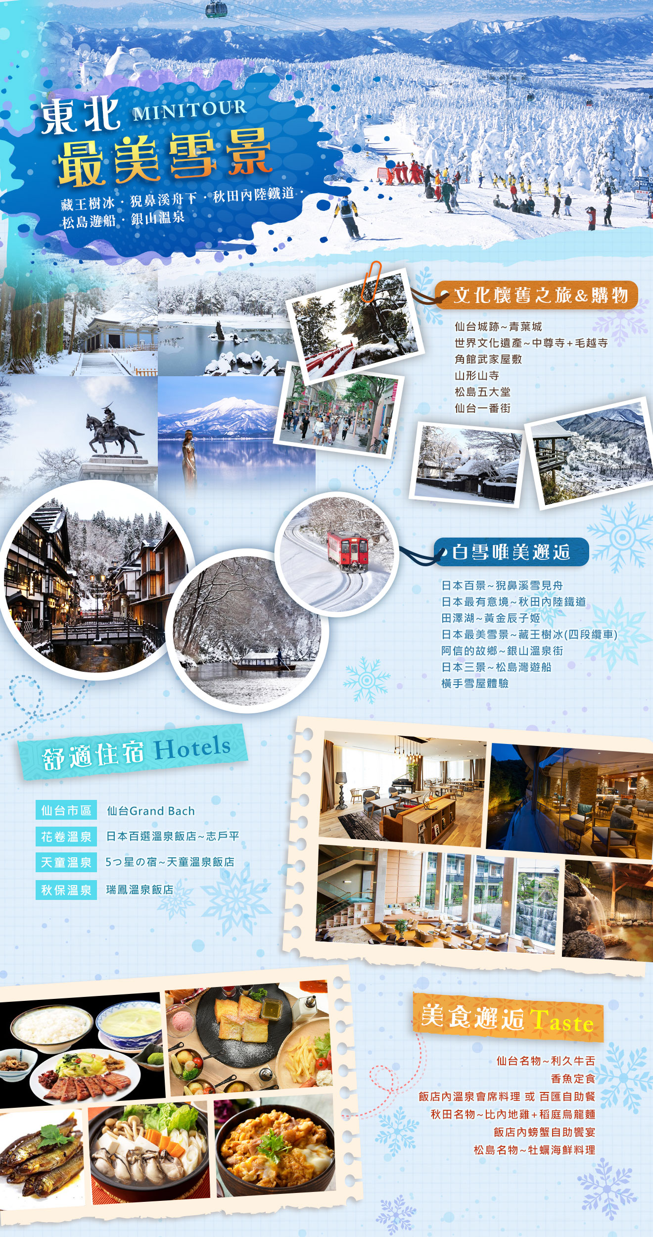 TOUR - 【最美雪景】藏王樹冰.猊鼻溪舟下.秋田內陸鐵道.松島遊船.銀山溫泉5天