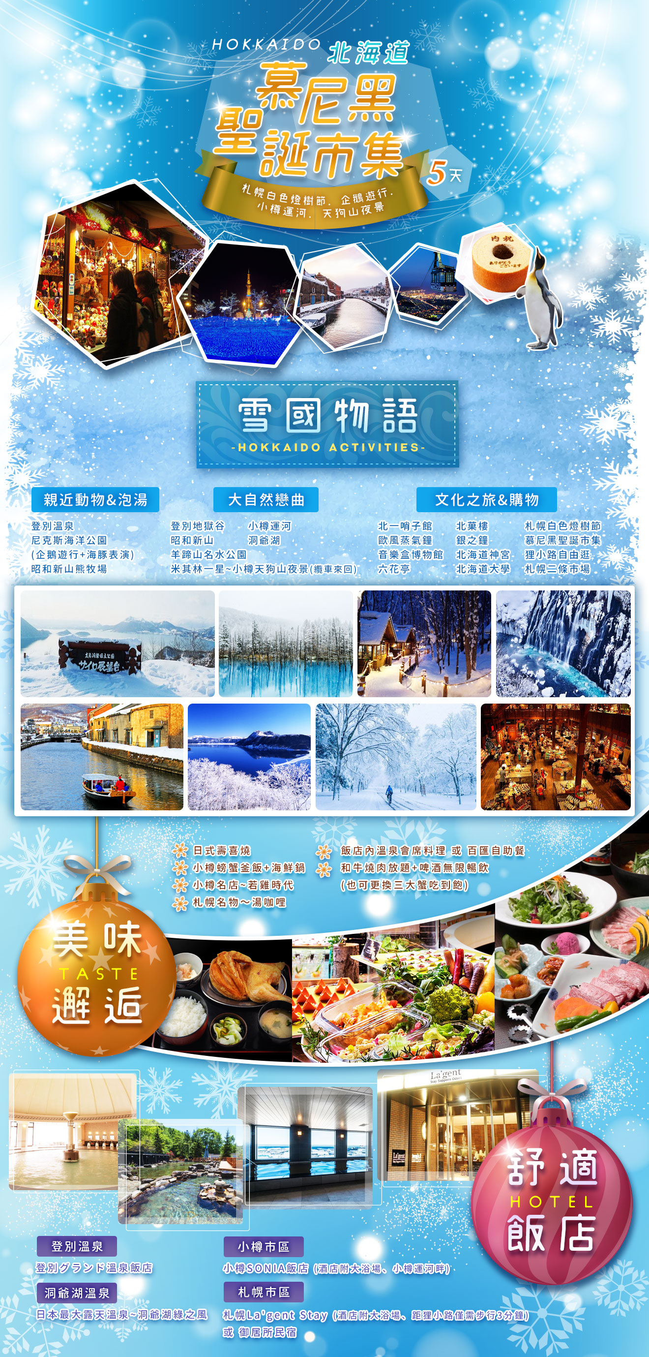TOUR - 【札幌聖誕市集】白色燈樹節.企鵝遊行.洞爺湖綠の風.小樽運河.天狗山夜景5天