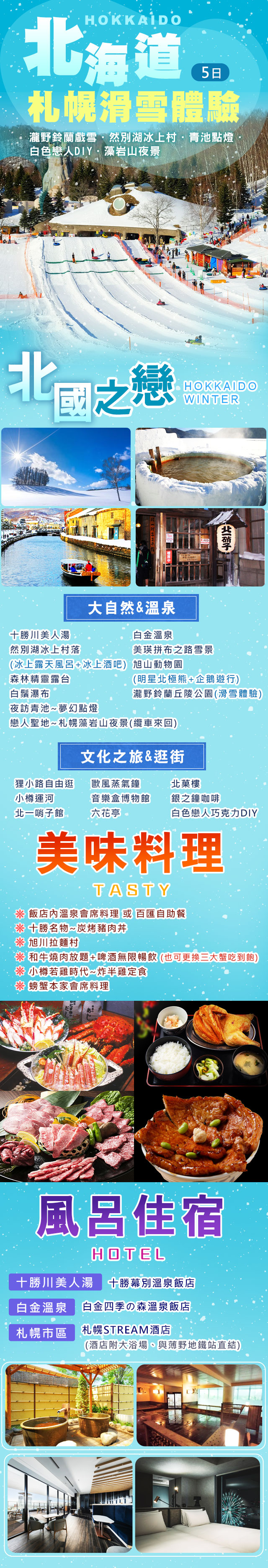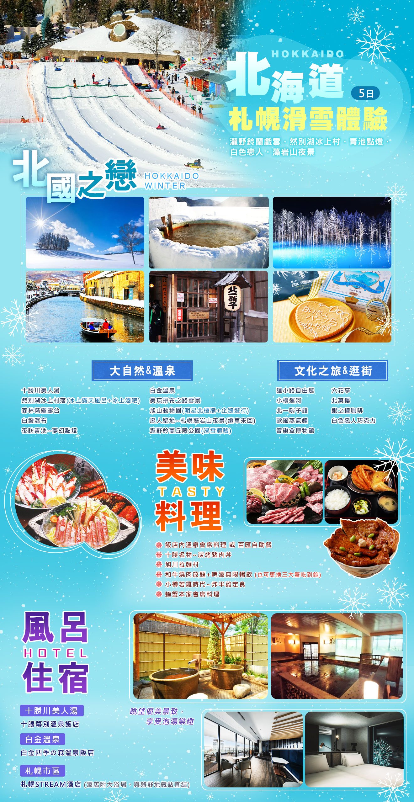 TOUR - 【札幌滑雪體驗】瀧野鈴蘭戲雪.然別湖冰上村.青池點燈.白色戀人.藻岩山夜景5天