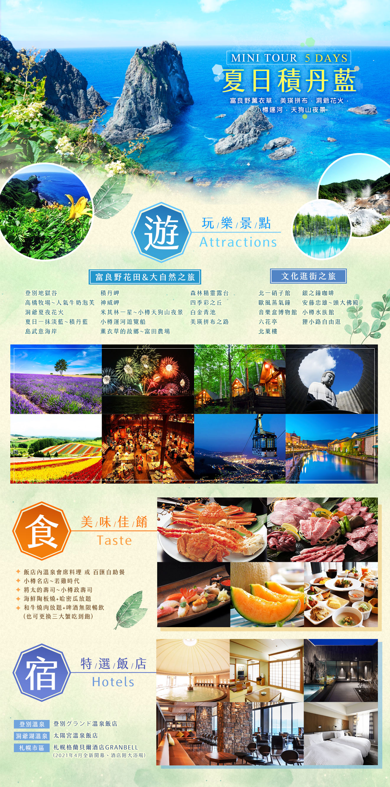 TOUR - 【夏日積丹藍】富良野薰衣草.美瑛拼布.洞爺花火.小樽運河.天狗山夜景5天