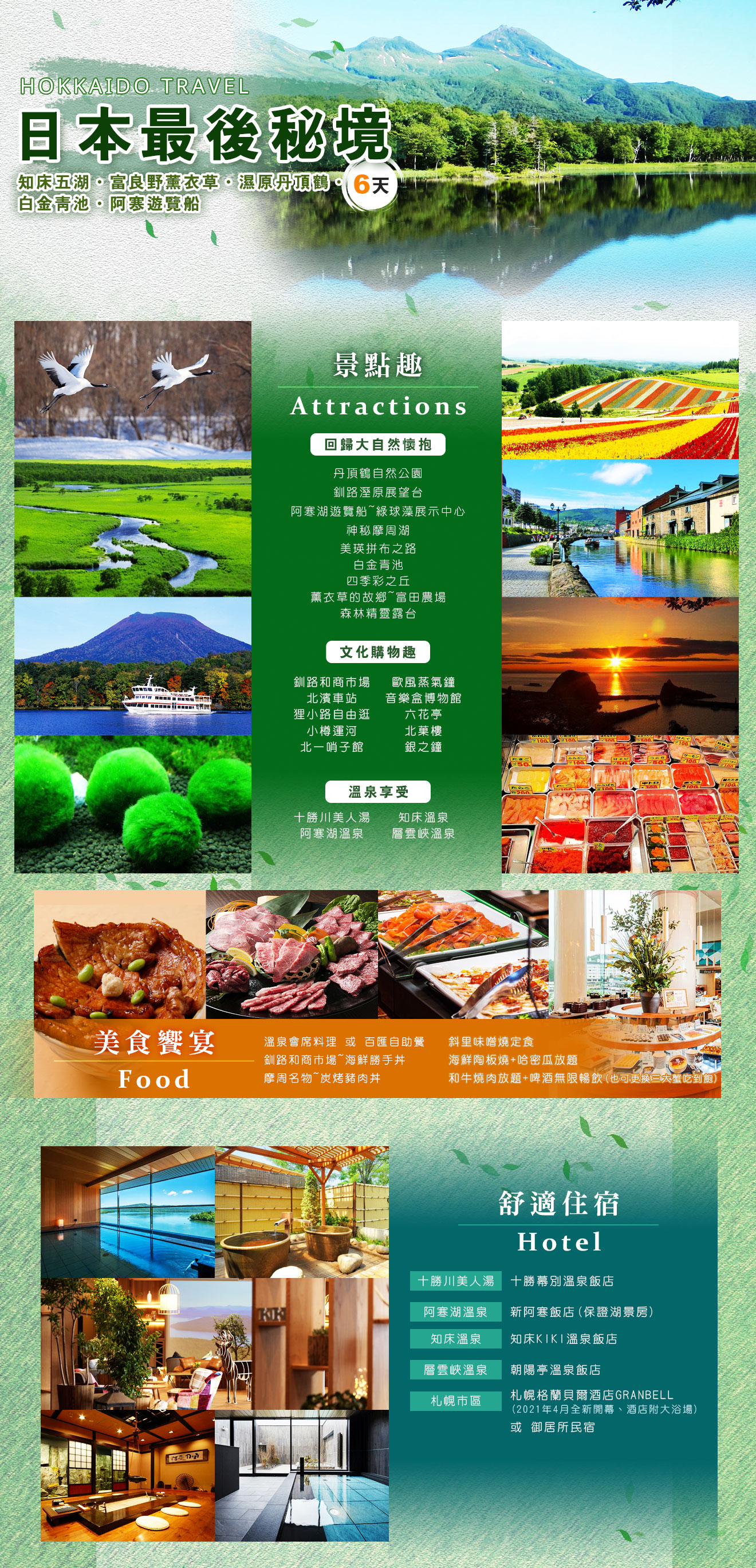 TOUR - 【日本最後秘境】知床五湖.富良野薰衣草.濕原丹頂鶴.白金青池.阿寒遊覽船6天