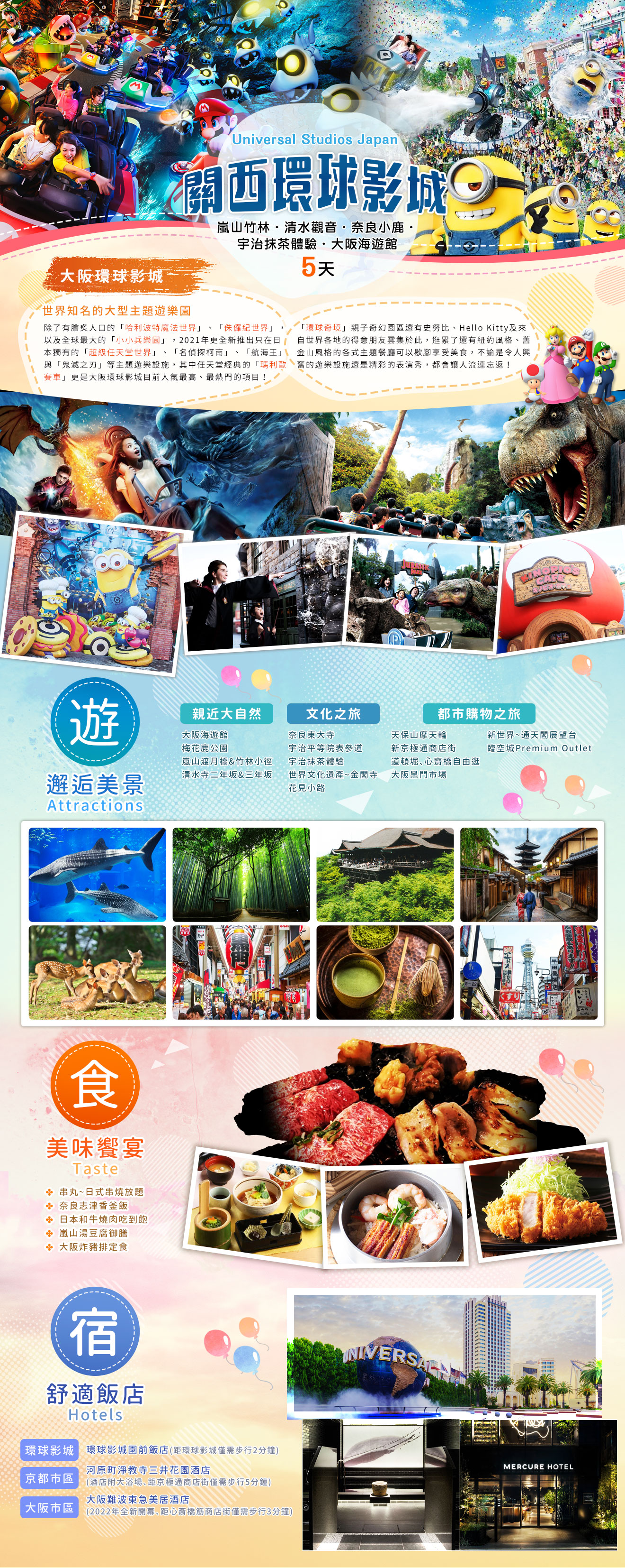 TOUR - 【關西環球影城】嵐山竹林.清水觀音.奈良小鹿.宇治抹茶體驗.大阪海遊館5天