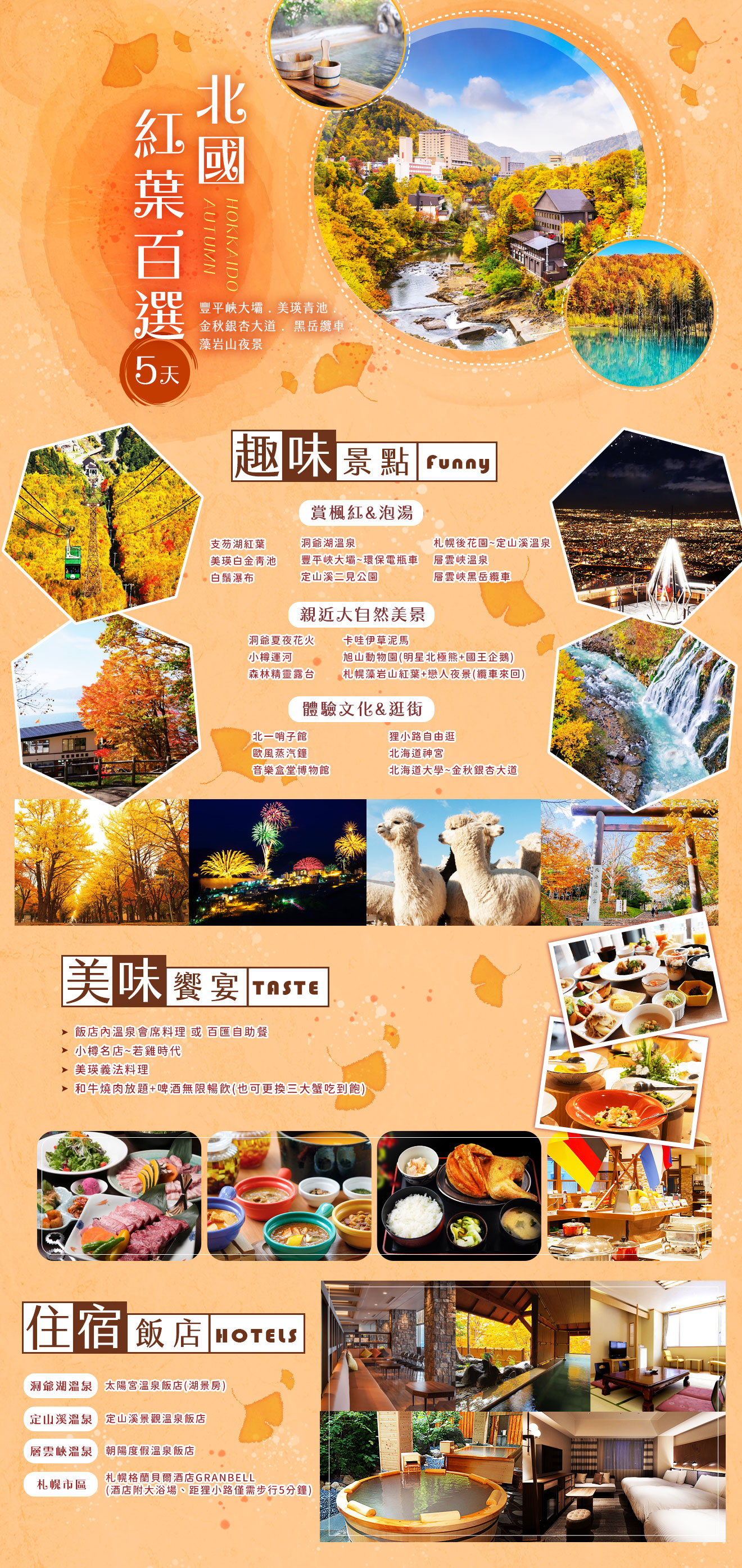 TOUR - 【北國紅葉百選】豐平峽大壩.美瑛青池.金秋銀杏大道.黑岳纜車.藻岩山夜景5天