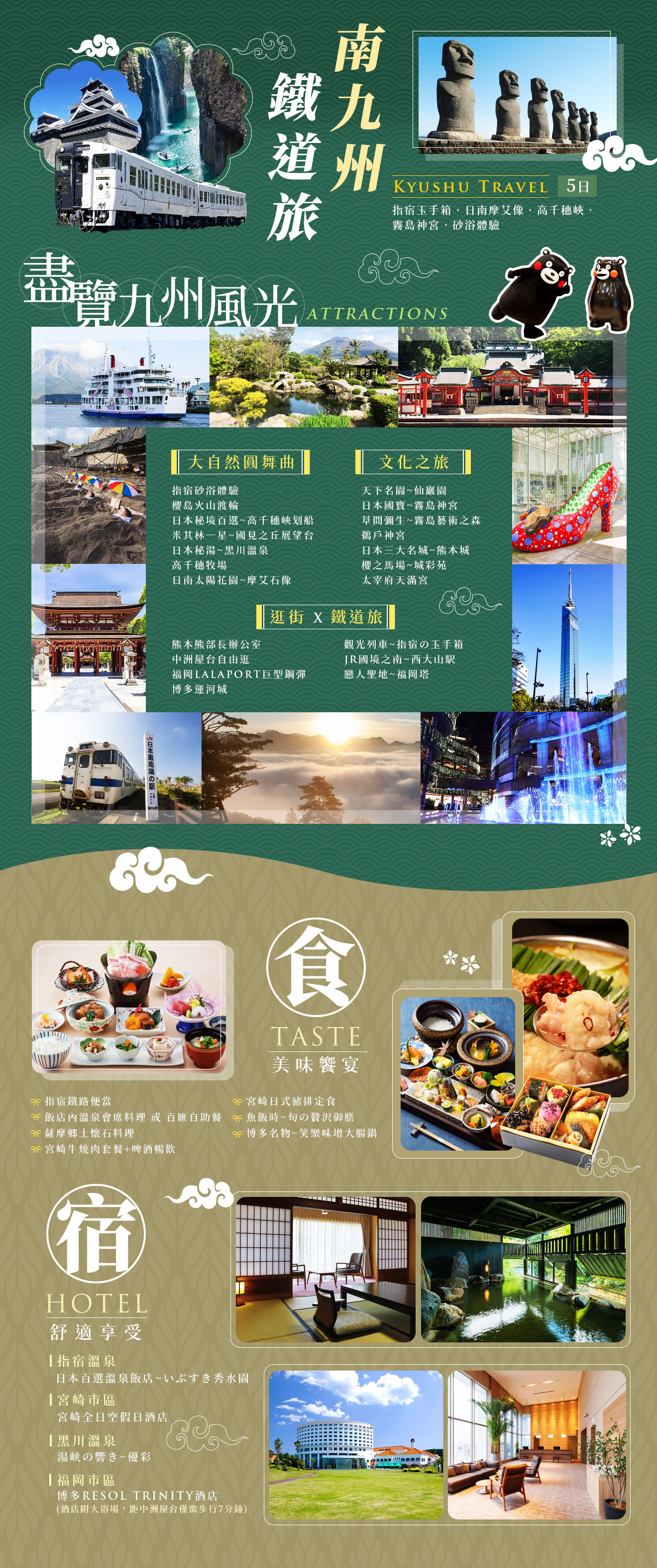 TOUR - 【南九州鐵道旅】最南端列車~指宿玉手箱.日南摩艾像.高千穗峽.霧島神宮.砂浴體驗5天