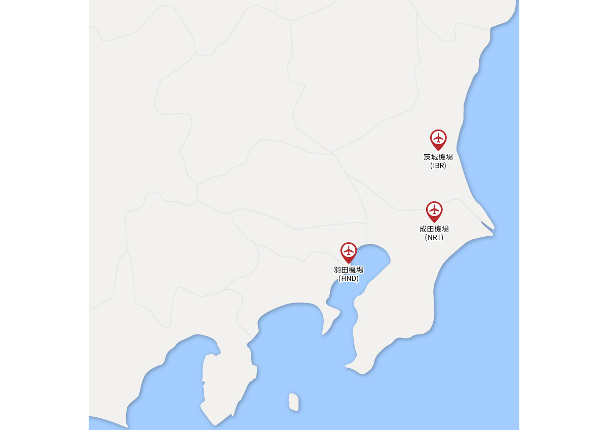 關東地區以 成田機場/羽田機場/茨城機場 有提供國際線航班,其他機場為提供國內線航班。