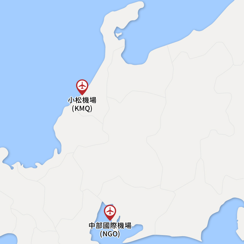 北陸地區以 中部國際機場/小松機場 有提供國際線航班,其他機場為提供國內線航班。